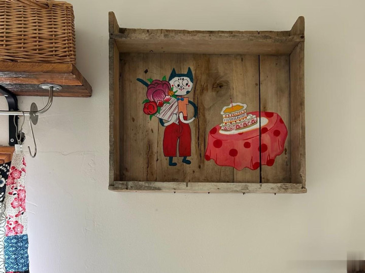 不过,在他家我发现,捡回去的抽屉竟然成了墙面上独具风格的储物格。